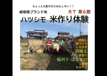 岐阜県ブランド米ハツシモ米作り体験の参加を募集します。ちょっと大変だけどおもしろい、稲作の工程を全て体験できます。