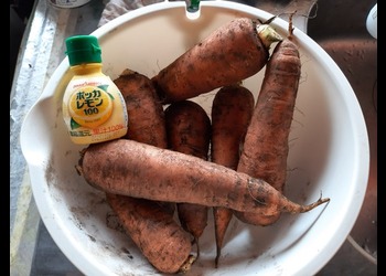 小牧市の農園、千亨園にて農薬不使用で栽培したニンジンです。ご希望であれば、葉っぱの部分も一緒にご提供することが可能です。ご連絡ください。